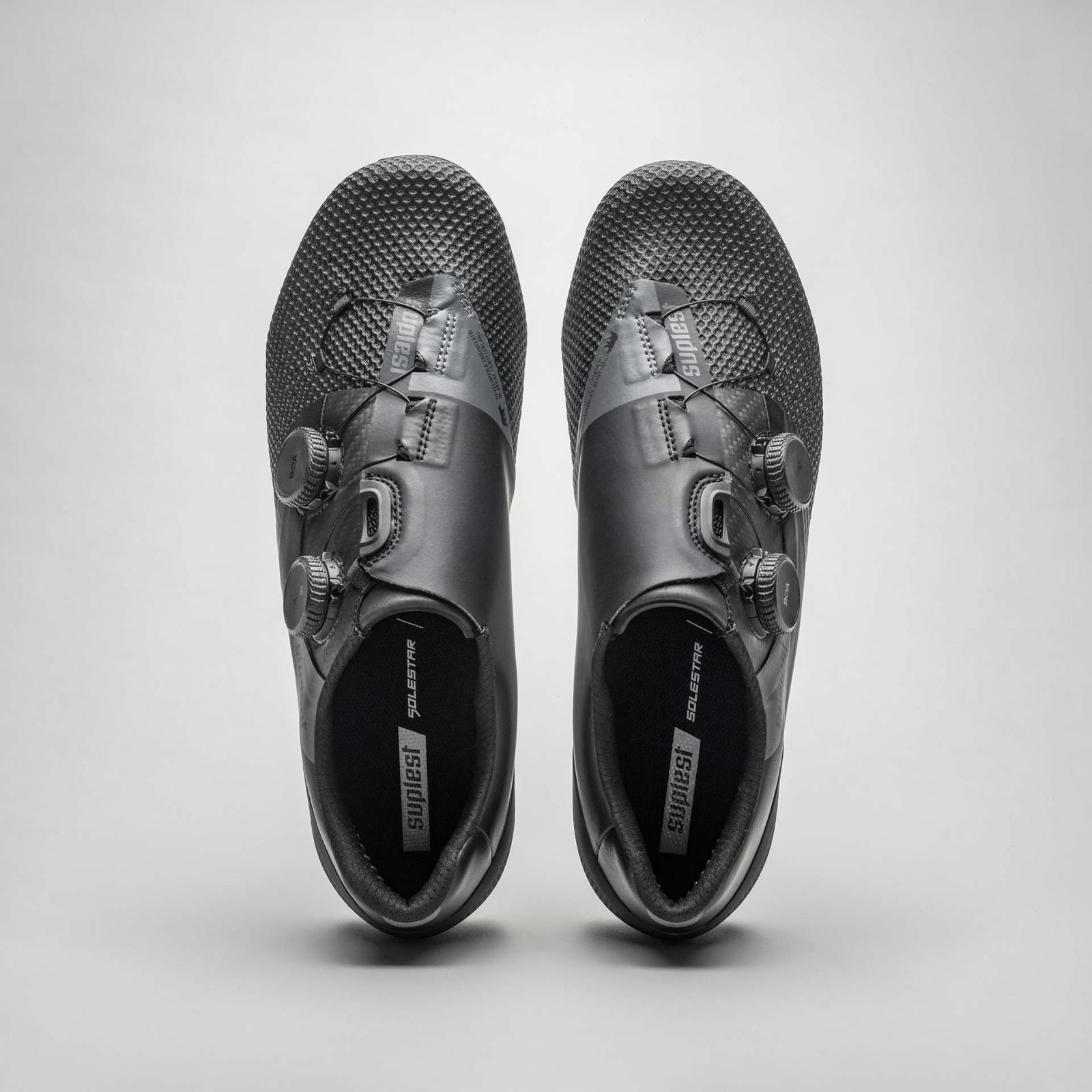 Der EDGE+ 2.0 ROAD PRO wurde für den Renneinsatz entwickelt und wird den Ansprüchen der weltbesten Rennfahrer:innen gerecht. Das dünne Mikrofaser-Obermaterial aus Japan kombiniert mit dem stabilen und luftdurchlässigen 3D-Mesh im Vorfuss bietet hohen Tragekomfort. Die BOA® Fit System Li2 Verschlüsse erlauben eine präzise Fixierung des Fusses. Die steife ERGO 360° Carbon Sohle in Kombination mit der SOLESTAR Einlegesohle ermöglichen eine unglaubliche Energierückgabe auf das Pedal während der gesamten Fahrt. Unser Strassenschuh kombiniert Effizienz mit Komfort.